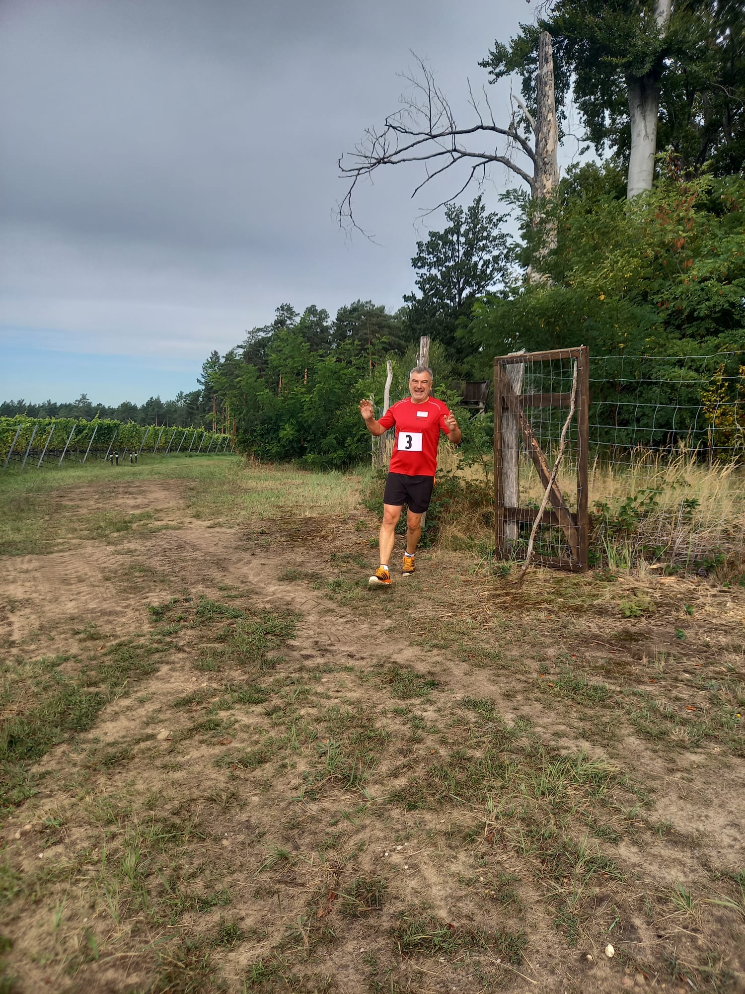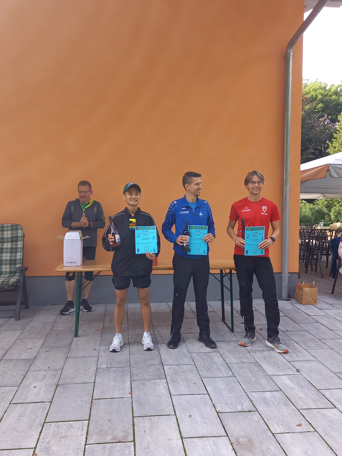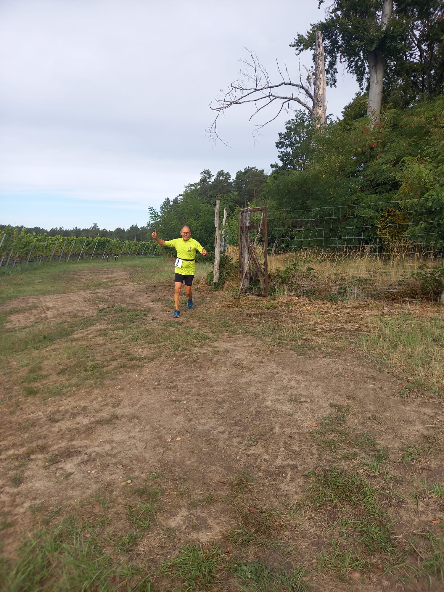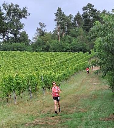 Den Startschuss zum 2. Weinberglauf gab der Winzer persönlich. Es ging eine Runde durch den angrenzenden Wald und zum Schluss der Wegführung entlang des Weinbergs bergab ins Ziel. Ob alle Läuferinnen und Läufer die voll hängenden Weinreben mit den dunkelblauen Trauben bewundern konnten, ist nicht bekannt.