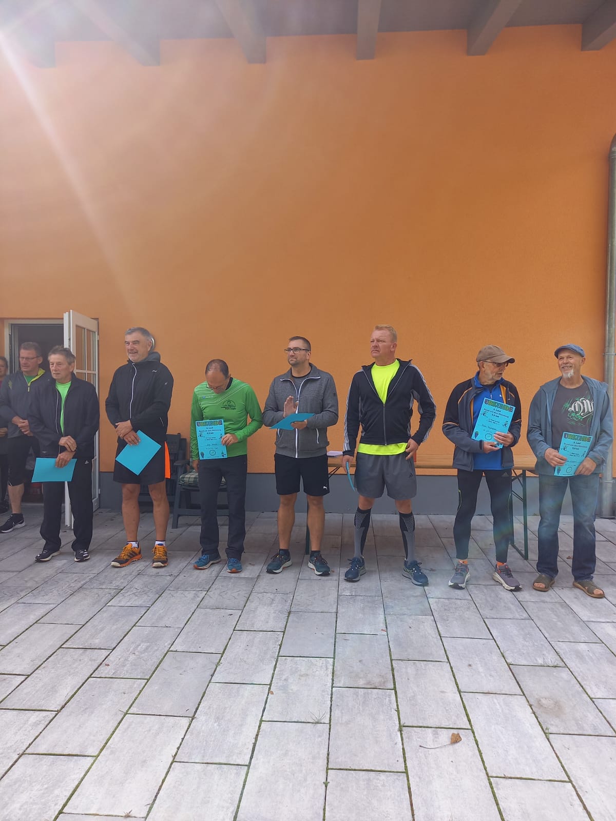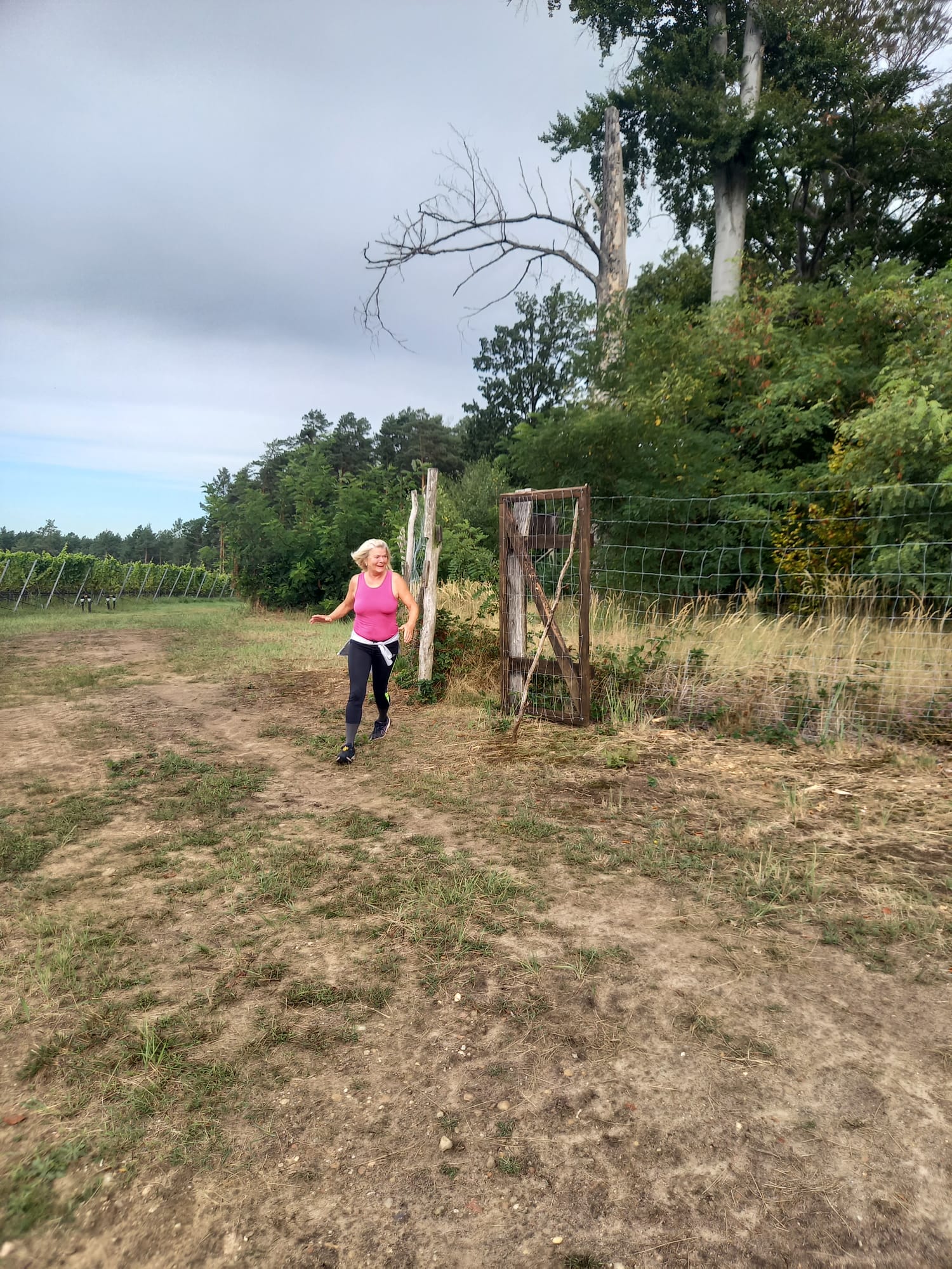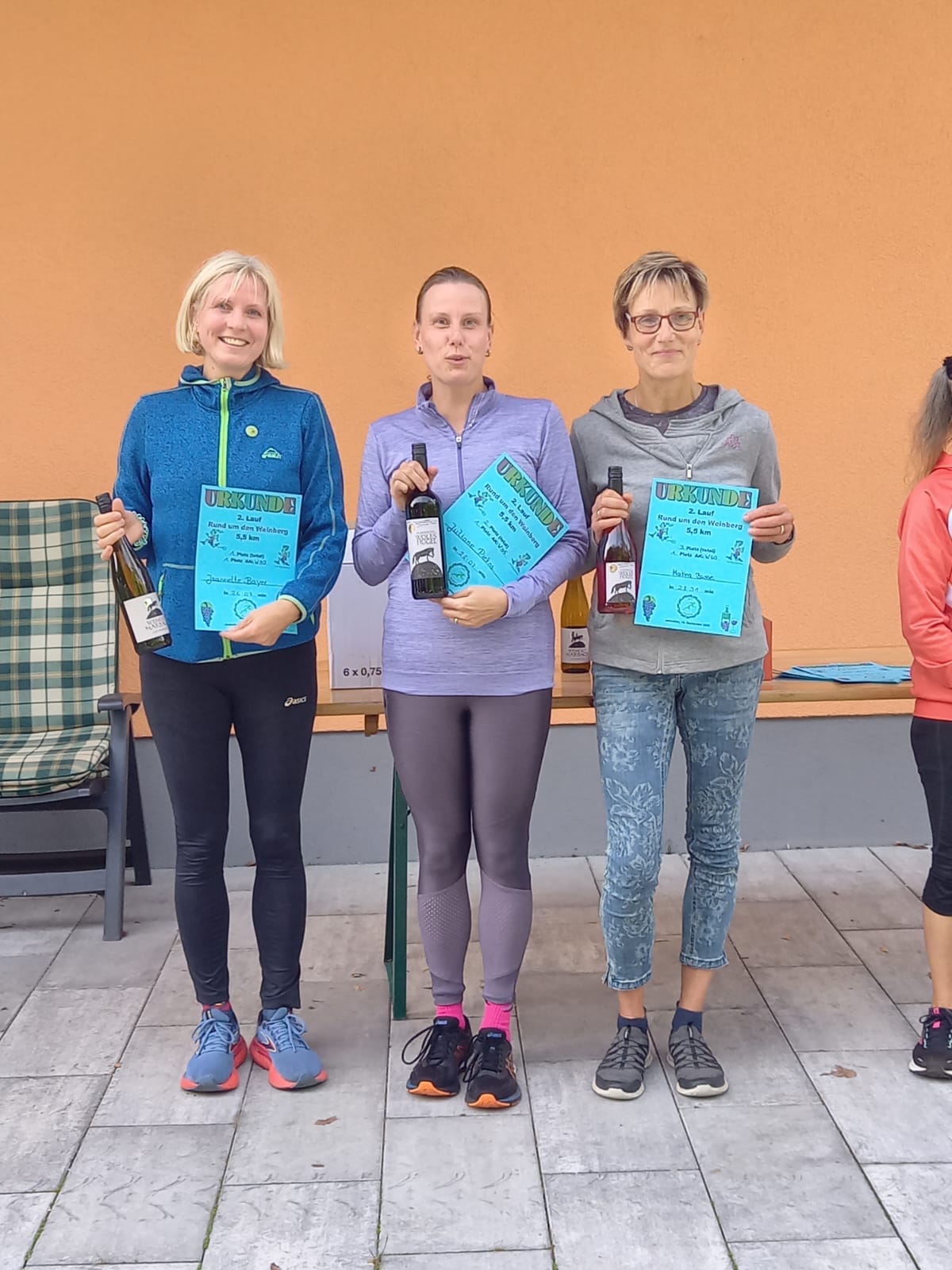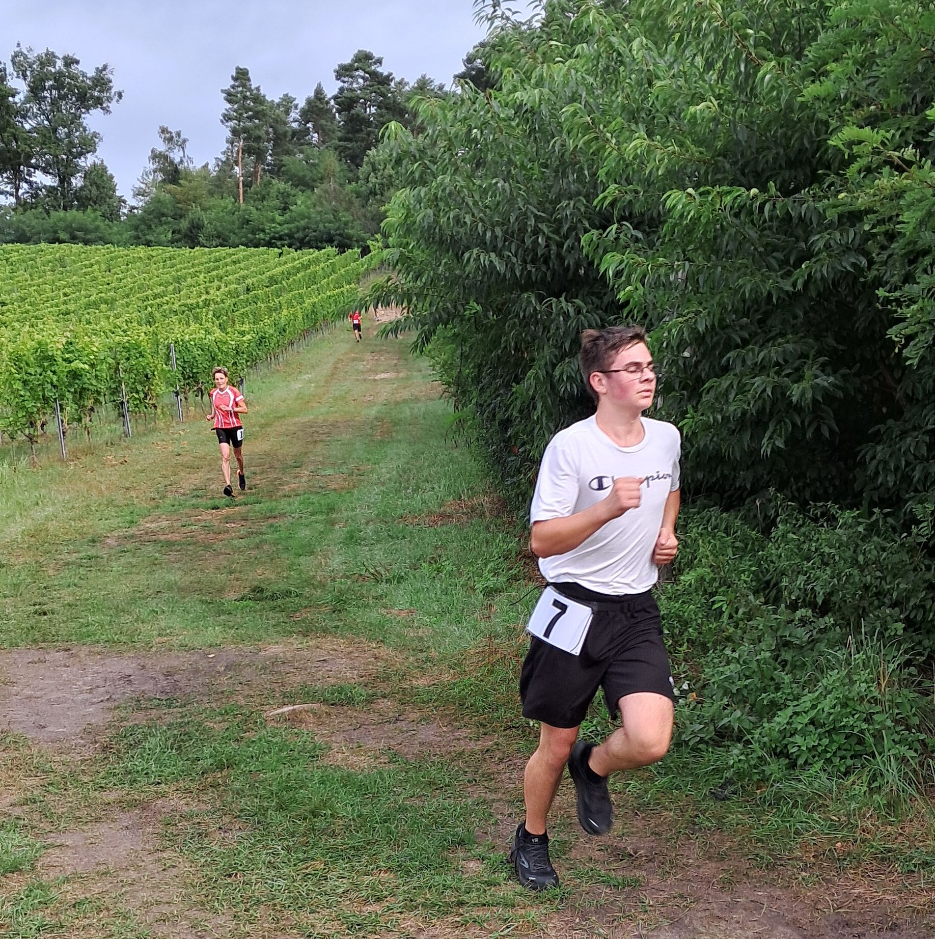 Den Startschuss zum 2. Weinberglauf gab der Winzer persönlich. Es ging eine Runde durch den angrenzenden Wald und zum Schluss der Wegführung entlang des Weinbergs bergab ins Ziel. Ob alle Läuferinnen und Läufer die voll hängenden Weinreben mit den dunkelblauen Trauben bewundern konnten, ist nicht bekannt.